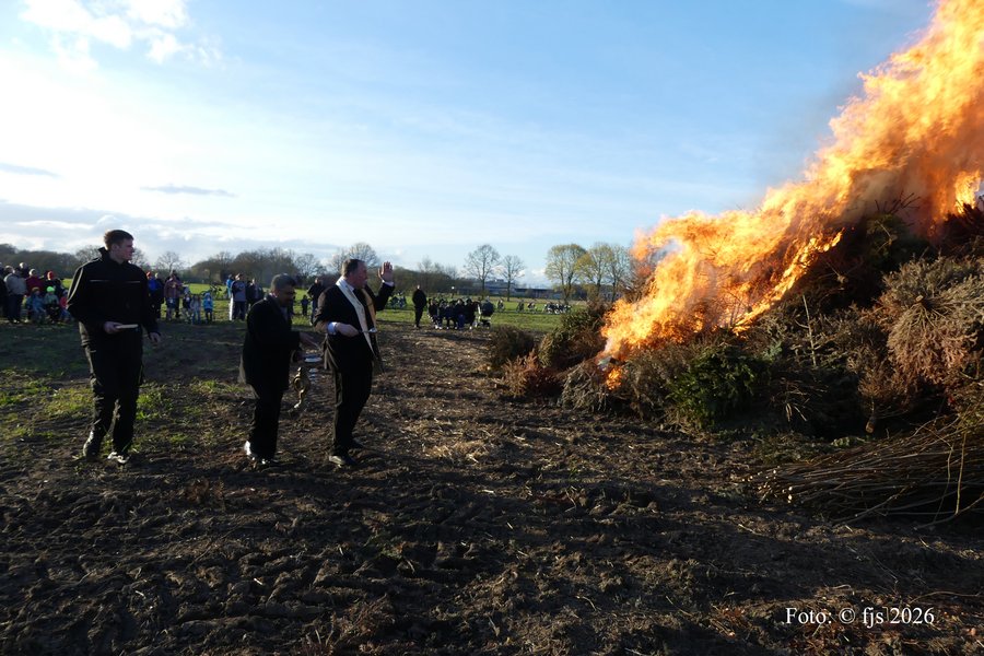 Osterfeuer loderten am Ostersonntag im Münsterland, so auch in der Glockenstadt. Die Landjugend (KLJB) hatte hierzu zu einem zentralen Feuer in Tungerloh-Pröbsting geladen. Bevor das Feuer als Zeichen des Lebens und der Auferstehung entzündet wurde, segnete Pfarrer Wenning das aufgeschichtete Holz mit Weihwasser. Hier fanden u.a. die von der KLJB eingesammelten ausgedienten Weihnachtsbäume eine zweite Verwendung. Pfarrer Wenning sowie Pastor Jacob entzündeten das große Osterfeuer mit dem mitgebrachten Licht der Osterkerze 2026. Leon Horstick, Vorstand der KLJB dankte der Familie Vens-Hilbt für die Bereitstellung des Geländes zum Abbrennen des Osterfeuers. Rund 250 Zuschauer, ob groß oder klein ließen sich das Spektakel um das große Feuer nicht entgehen.Mit Getränken und Grillwurst wurden dabei die Besucher versorgt.