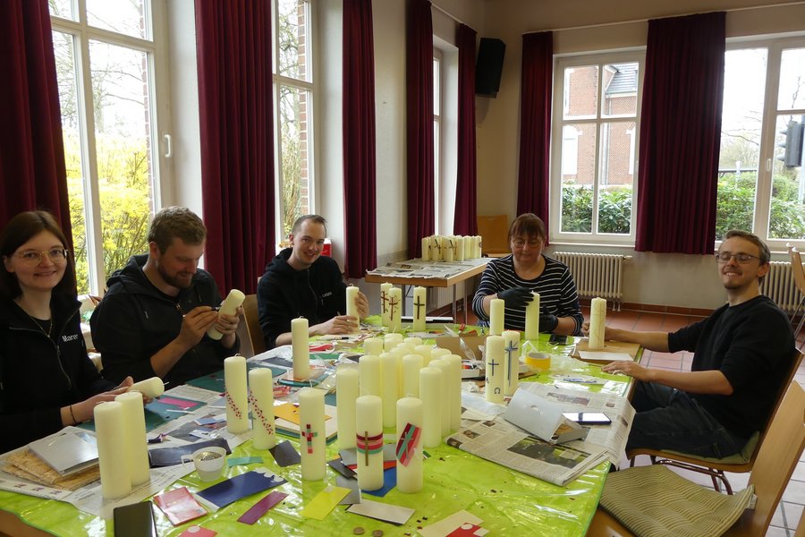 Auch in diesem Jahr lädt die Kolpingjugend Gescher wieder alle Interessierten dazu ein, ihre Osterkerze selbst zu gestalten. Dazu wird ein offener Bastelnachmittag am Sonntag, 22.03.2026 von 11.00 bis 16.00 Uhr im Saal vom Haus der Begegnung (Marienstraße, Gescher) angeboten. Wachsplatten sind vorhanden; Brettchen, Messer und Lineale sollen möglichst von Zuhause mitgebracht werden. Eine gesegnete Osterkerze kostet, inkl. Material 7,- Euro. Natürlich können auch in diesem Jahr wieder von der Kolpingjugend gestaltete Osterkerzen nach den Gottesdiensten am Palmsonntag-Wochenende erworben werden (solange der Vorrat reicht). Diese kostet ebenfalls 7,- Euro. Vorbestellungen werden per Mail an kolpingjugend-gescher@gmx.de entgegengenommen.